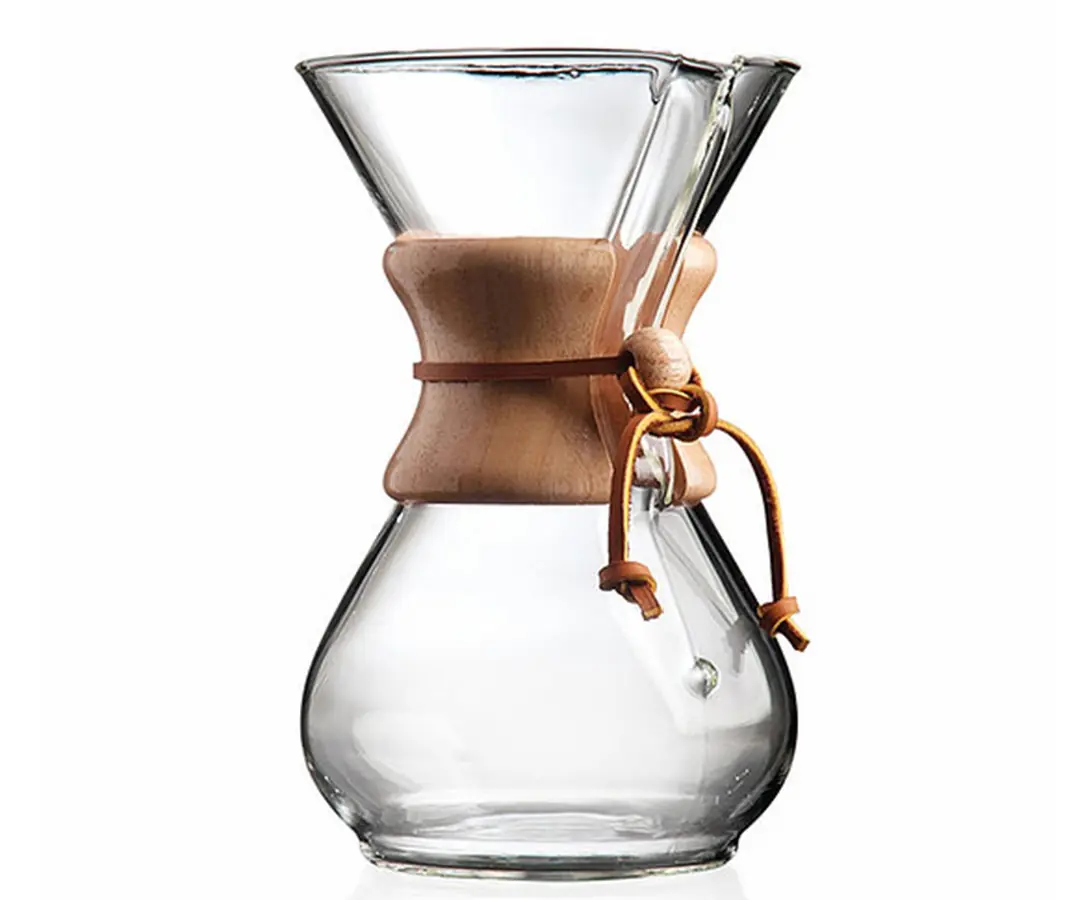 <span style="color: rgb(13, 13, 13) font-size: 16px font-weight: 400">Bu yüzyılda Chemex'in tasarımı ve işlevi mükemmel bir şekilde birleşmiş durumda. Chemex demleme aparatı, zarif, tek parça ve kum saati şeklinde tasarlanmış, dayanıklı ve yüksek kaliteli camdan üretilmiştir. Geleneksel modeli, cilalı ahşap bir tutma yeri ve deri bağı ile birlikte gelmektedir. Ahşap tutma yeri, Chemex'in ortasında ısıya dayanıklı bir alan oluşturur, böylece kahve demlenirken Chemex'in tutulması kolaylaşır. Bu model, tek seferde 6-8 bardak kahve demlemek için idealdir. Chemex ile birlikte Chemex filtre kağıtlarını da unutmayın.</span>