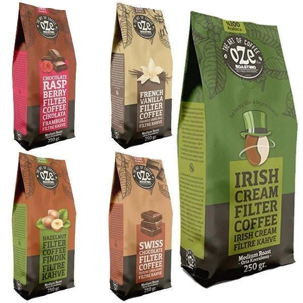 Aromalı Filtre Kahve Seti 5'li 250G Şeker İçermeyen Doğala Özdeş Aromalar ''AA'' Kalite 3 Farklı %100 Arabica Kahve Çekirdeklerinin Harmanı Aromalı Filtre Kahve Tanışma Seti Irish Cream, All Day Blend, Vanilya 3'lü 250G, 3 farklı %100 Arabica çekirdeklerine sahip blend aromalı kahvelerden ve All Day Blend’den oluşan bir settir. Aromalı Filtre kahvelerin blendi hazırlanırken Robusta çekirdeği kullanılmaz. All Day Blend’de ise %30 oranında robusta kullanılır. Bu sette özenle seçilmiş kahve çekirdeklerinin özel olarak harmanlanmasına ek olarak aromalı filtre kahveler doğala özdeş aromalar ile tatlandırılır ve şeker içermez. All Day Blend ise sade bir filtre kahvedir. Setteki kahvelerin kavrulma derecesi, orta seviyede tutulur. Bu seviye ile hem kahve severler hem de yeni başlayanlar için orta ve yoğun gövdeli bir içim deneyimi hedeflenir. Hangi kahveyi almanız gerektiği konusunda kararsızlık yaşıyorsanız bu set size büyük bir fırsat sunar. Fiyat performans oranıyla da göz dolduran bu sette; Irish Cream + Çikolata & Frambuaz + Vanilya + Fındık + Çikolata Aromalı 250G’lık paketlerde sunulan Filtre Kahveler bulunmaktadır. Özel valfli ambalajlarla, kahveniz daima taze kalır. Ters valf sistemi ile kahve öğütüldükten veya kavrulup çekirdek olarak paketlendikten sonra çıkan gazı dışarı atar fakat dışarıdan içeriye hava almaz. Böylelikle, kargo poşetinin size ulaşmasından kahvenin bitimine kadar her fincanda aromalı filtre kahvelerin yoğun kokusu ve taze aromasını deneyimlersiniz. Filtre Kahve Nasıl Hazırlanır? French Press'te Filtre Kahve Hazırlama 1 yemek kaşığı (7 gr.) çekilmiş filtre kahveyi french press'e koyun. İstenilen sıcaklıktaki 125 ml. sıcak suyu yavaşça kahvenin üstüne dökün. Kahve ve suyun tamamen birbirine karışmasını sağlayın. French press'inizin kapağını suyun üstünde kalacak şekilde yerleştirin. Kahve 4 dakika demlendikten sonra kapağı yavaşça aşağı doğru itin. Kapak en alta indiğinde kahveniz servise hazırdır. Filtre Kahve Makinesinde Hazırlama 1 fincan için 1 yemek kaşığı (7 gr.) çekilmiş filtre kahveyi makinedeki kahve haznesine koyup makinenin su haznesine su ekleyin. Kaynayan su filtre kağıdından tamamen süzüldükten sonra kahveniz servise hazırdır. Gramaj: 250 gr. x 5 İçerik: Aromalı Filtre Kahve Seti 5'li 250G Ürün Ambalaj: Valfli Ambalaj Kargoya Veriliş Süresi: Aynı Gün Kargoda