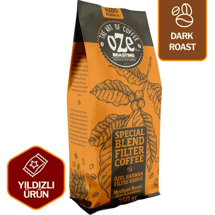 Special Blend Dark Roast Filtre Kahve 250G ''AA'' Kalite 3 Farklı %100 Arabica Kahve Çekirdeklerinin Harmanı Special Blend serisinin en koyu ve etkileyici üyesi olarak sunulan Special Blend Dark Roast Filtre Kahve 250G, gerçek kahve tutkunları için bir başyapıt. Her bir yudumunda tutkulu bir lezzet deneyimi sunan bu kahve, en seçkin "AA" kalite %100 Arabica kahve çekirdeklerinin ustaca harmanı ile şekilleniyor. Special Blend Dark Roast Filtre Kahve 250G'ın özünde yatan derin lezzet, koyu kavurma süreciyle ortaya çıkıyor. Kahve çekirdekleri özenle haftalık kavrumlarla işlenir ve bu kavurma sırasında çekirdeklerin içindeki potansiyel keşfedilir. Bu özel kavurma, çekirdeklerin kendine özgü tat notalarını ve aromalarını derinleştirirken, koyu ve yoğun bir karakter oluşturur. Dark Roast'un en belirgin özelliklerinden biri, sert ve yoğun gövdesidir. Her bir yudum, damakta iz bırakan dolgun bir dokuya sahiptir. Bu özellik, kahve keyfini tam anlamıyla yaşamak isteyenler için mükemmel bir tercihtir. Kendine özgü dengeli asiditesi sayesinde günün her saati tüketim için uygundur. Sabahın erken saatlerinde uyanırken veya akşamüstü keyif anlarında, bu kahvenin zengin ve dengeleyici tadı her zaman eşlik edebilir. Special Blend Dark Roast Filtre Kahve 250G ile en zengin ve derin kahve tatlarını keşfedin. Bu özel kahve ile her yudumda farklı bir dünyaya açılacak, kahve tutkusunu en üst seviyede yaşayacaksınız. Şimdi Dark Roast'un özel dünyasına adım atın ve yoğun karakteristik kahve keyfini keşfedin. Filtre Kahve Nasıl Hazırlanır? French Press'te Filtre Kahve Hazırlama 1 yemek kaşığı (7 gr.) çekilmiş filtre kahveyi french press'e koyun. İstenilen sıcaklıktaki 125 ml. sıcak suyu yavaşça kahvenin üstüne dökün. Kahve ve suyun tamamen birbirine karışmasını sağlayın. French press'inizin kapağını suyun üstünde kalacak şekilde yerleştirin. Kahve 4 dakika demlendikten sonra kapağı yavaşça aşağı doğru itin. Kapak en alta indiğinde kahveniz servise hazırdır. Filtre Kahve Makinesinde Hazırlama 1 fincan için 1 yemek kaşığı (7 gr.) çekilmiş filtre kahveyi makinedeki kahve haznesine koyup makinenin su haznesine su ekleyin. Kaynayan su filtre kağıdından tamamen süzüldükten sonra kahveniz servise hazırdır. Gramaj: 250 gr. İçerik: Special Blend Dark Roast Filtre Kahve 250G Ürün Ambalaj: Valfli Ambalaj Kargoya Veriliş Süresi: Aynı Gün Kargoda