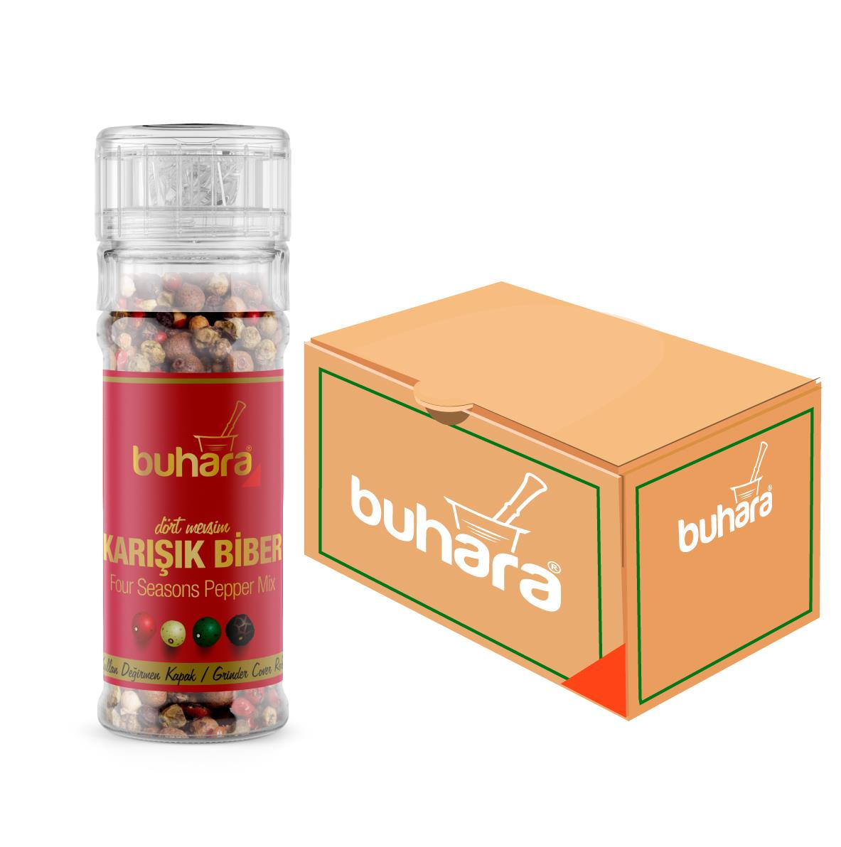 BUHARA TOPTAN 4 MEVSİM KARIŞIK BİBER CAM DEĞİRMEN 40 GR x 15 Ad.