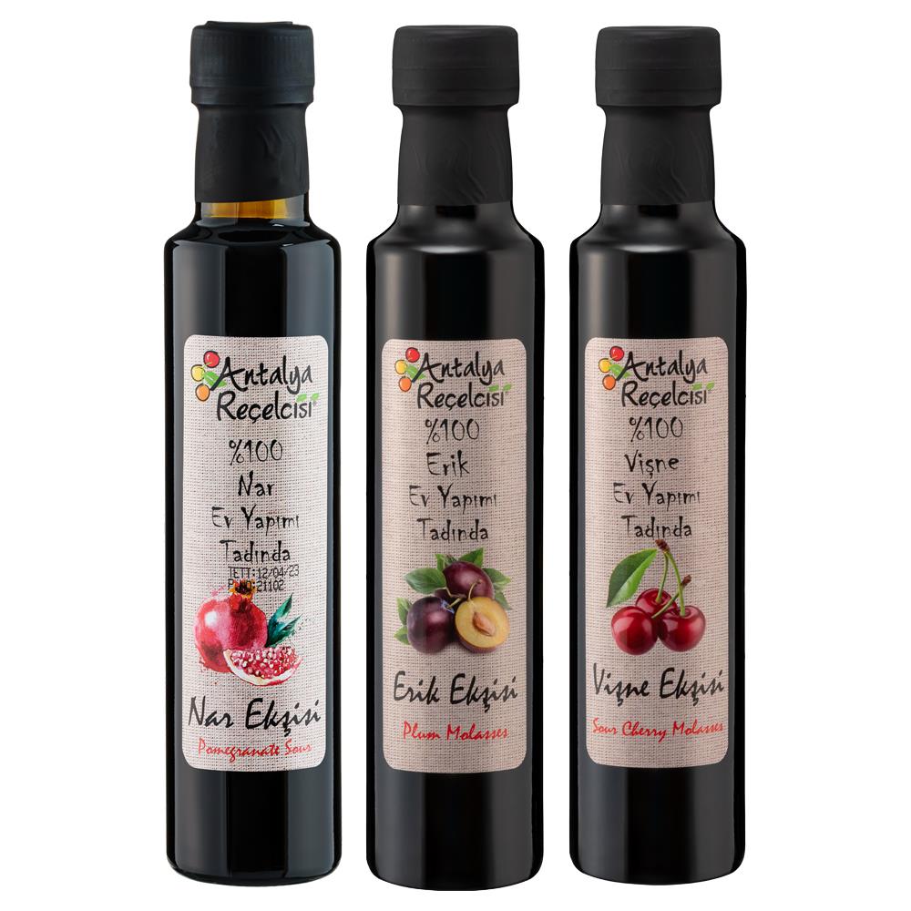 ✔️ Lezzetli Ekşi Çeşitleri: Damak zevkinize uyum sağlayacak bu lezzetler sofranıza geliyor. ✔️ Mükemmel Kalite ve Lezzet: Bu eşsiz ekşiler, Ekşilik ve lezzet patlaması için salataların üzerine gezdirin. ❤️ Müşteri Memnuniyeti: Müşteri memnuniyeti en büyük önceliğimizdir. Herhangi bir sorunuz veya endişeniz varsa lütfen bizimle iletişime geçmekten çekinmeyin. Müşteri hizmetlerimiz en kısa sürede size yardımcı olmaktan mutluluk duyacaktır. Not: Mobil bölge dışında kalan, hepsiJET firmasının ulaşamadığı noktalara Sürat Kargo ile gönderim sağlanmaktadır. Antalya Reçelcisi Ekşi Çeşitleri | Nar Ekşisi | Erik Ekşisi | Vişne Ekşisi 620G ✔ Mutfak Lezzetleri - Bu 3 çeşit ekşisinin yoğun ve ekşi aromasıyla tuzludan tatlıya yemeklerinizi zenginleştirin. ✔ Miksoloji Sihri(karıştırma sanatı) - Lezzetli, ekşi aromalaryla benzersiz alkolsüz kokteyller yaratın. ✔ Salata Sosları - Ekşilik ve derinlik patlaması için salataların üzerine gezdirin. ✔ Marine Sosları - Et ve sebzeler için marine soslarınıza ekşi bir tat katarak değişiklik yapın. ✔ Pişirme - Damak zevkinizi şaşırtmak için tatlılar, hamur işleri ve sırlarla deneyler yapın. Antalya Reçelcisi ile mutfak maceralarınızı zenginleştirin! ☑️ Özel Muhafaza ve/veya Kullanım Koşulları : ☑️ Detaylı Ürün Bilgisi : Ekşi çeşitlerinin eşsiz lezzeti ve ekşiliğinin mükemmel bir birleşimi olan bu doğal şifa kaynağı, yemeklerinize ve salatalarınıza benzersiz bir tat katıyor. Sofranızı renklendirmek, yemeklerinize özel bir lezzet katmak için Antalya Reçelcisinin ekşi çeşitlerini keşfedin. ☑️ Alerjen Bileşenler : ☑️ Besin Değerleri : Enerji (kj/kcal) : 1304/307 Yağ (g) : 1,2 Doymuş Yağ (g) : 0,1 Trans Yağ (g) : 0,0 Karbonhidrat (g) : 72,0 Diyet Lif (g) : 0,0 Şeker (g) : 60,8 Protein (g) : 2,1 Tuz (g) : 0,0 Erik Ekşisi Enerji (kj/kcal) : 1214/290 Yağ (g) : 0,0 Doymuş Yağ (g) : 0,0 Trans Yağ (g) : 0,0 Karbonhidrat (g) : 72,5 Şeker (g) : 68,4 Protein (g) : 0,0 Tuz (g) : 0,5 Enerji ve Besin Öğeleri 100g için : Şeker (g) : 67,5 Protein (g) : 0,0 Tuz (g) : 5,0 ☑️ İÇİNDEKİLER (BİLEŞENLERİN LİSTESİ) : %100 Nar - Erik - Vişne suyu konsantresi