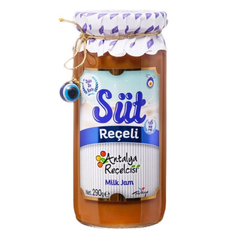 Süt Reçeli: Kazan veya tencerelerde ağır ağır, sürekli karıştırılarak pişirilmesi sonucu elde edilen, katı ile sıvı arası kıvamda viskoz yapıda bir tatlı çeşididir. Not: Mobil bölge dışında kalan, hepsiJET firmasının ulaşamadığı noktalara Sürat Kargo ile gönderim sağlanmaktadır. Antalya Reçelcisi Süt Reçeli 290g Cam Kavanoz Detaylı Ürün Bilgisi : Alerjen Bileşenler : Özel Muhafaza ve/veya Kullanım Koşulları : Enerji ve Besin Öğeleri 100g için : Enerji (kj/kcal) : 1412/334 Yağ (g) : 6,0 Doymuş Yağ (g) : 3,4 Karbonhidrat (g) : 64,0 Şekerler (g) : 65,0 Protein (g) : 6,0 Tuz (g) : 0,0 İÇİNDEKİLER (BİLEŞENLERİN LİSTESİ) :
