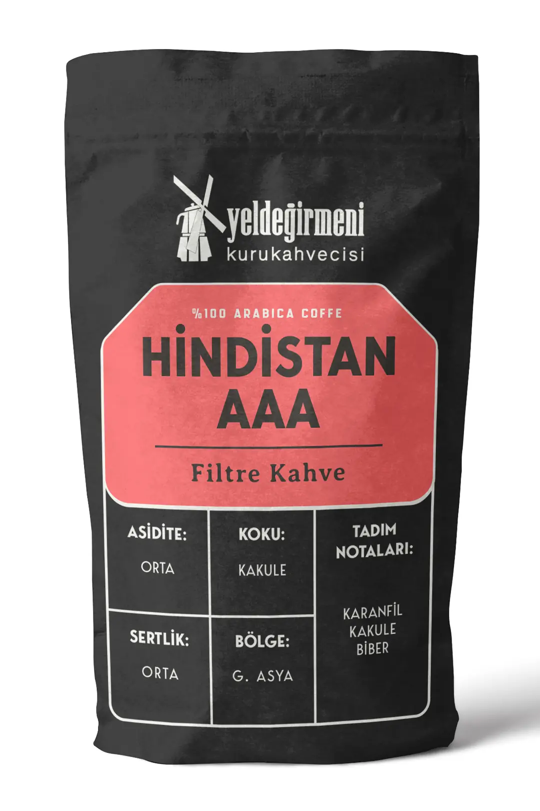 HindistanAAA Filtre Kahve, Endonezya bölgesinde yetişen kahvelere benzer yoğun gövdesive Guatemala kahvelerine benzer orta asiditesiyle benzersiz bir kahve deneyimisunar. Kakule, karanfil ve biber gibi baharat notalarıyla zenginleşen bu kahve,her yudumda sizi Hindistan’ın eşsiz aromalarıyla buluşturur. Orta kavrumuylaözenle hazırlanmış olan Hindistan AAA Filtre Kahve, farklı demleme yöntemlerineuygun olarak kişisel tercihinize göre hazırlanabilir. Lezzet: Kakule, Karanfil, Biber Demleme Yöntemleri: Chemex, V60, Aeropress, French Press gibi farklı demleme yöntemlerine uygundur. Öğütme Seçenekleri: Farklı demleme yöntemlerine uygun çeşitli öğütme seçenekleri sunulmaktadır. Filtre Kahve Hazırlanışı Filtrekahve, espresso ve Türk kahvesinden farklı olarak özel kavurma ve öğütmeyöntemleriyle hazırlanır. Bu kahve, diğer kahve türlerine göre daha kalın öğütülürve öğütülmüş kahvenin su ile temas ederek aromasını ve rengini aldıktan sonraposasından ayrılması sebebiyle "filtre kahve" adını alır. Filtrekahve hazırlarken, filtre kahve kağıdı için fincan başına 1 yemek kaşığı (7-10gr) kahve, French press demleme yöntemi için fincan başına 1 yemek kaşığındanbiraz fazla (8-12 gr) kahve koyunuz. Arzunuza göre kahve miktarını artırıpazaltabilirsiniz.