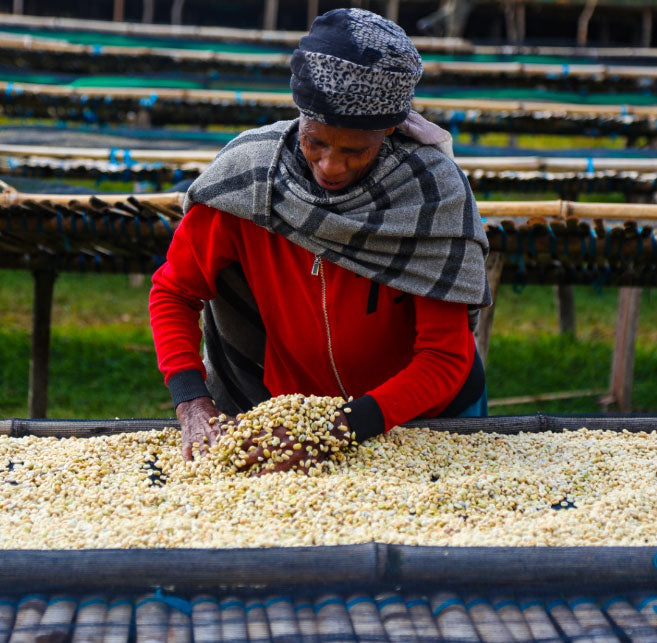 Ülke : Etiyopya Bölge : Sidama İşlem : Yıkanmış Üretici : Asefo Dukoma Korma Varyete : 74158 Rakım : 2260-2360 m Etiyopya'nın Sidama bölgesinden gelen Keramo , nitelikli kahve dünyasında "yüksek irtifa şampiyonu" olarak bilinir. Keramo aslında Bensa bölgesindeki küçük bir yerleşim yeridir ve buradaki kahveler genellikle 2.200 - 2.300 metre gibi ekstrem yüksekliklerde yetişir. Washed (Yıkanmış) işlem görmüş bir Keramo kahvesi hakkında bilmen gereken temel özellikler: 1. Tat Profili ve Karakteristikleri Yıkanmış işlem, kahvenin meyve etinden tamamen arındırılması demektir. Bu da Keramo’nun o meşhur "temiz" ve "parlak" asiditesini ön plana çıkarır: Asidite: Canlı, sitrik (limon, bergamot) ve bazen taş çekirdekli meyveleri (şeftali, kayısı) anımsatan bir yapıdadır. Gövde: Genellikle çay benzeri (tea-like), hafif ve zarif bir gövdeye sahiptir. Aromatikler: Yasemin veya hanımeli gibi çiçeksi notalar çok baskındır. 2. Terroir (Yetişme Koşulları) Keramo'yu özel kılan en önemli şey irtifadır . Hava soğuk olduğu için kahve kirazları çok yavaş olgunlaşır. Bu durum çekirdeğin daha yoğun (dense) olmasını sağlar. Yoğunluk: Çekirdekler küçük ama çok serttir. Bu yüzden kavururken ısıya karşı dayanıklıdırlar ve demlemede öğütme ayarını biraz daha hassas seçmek gerekir. Bu kahvenin o narin çiçeksi notalarını kaçırmamak için V60 veya Chemex gibi kağıt filtreli yöntemler en idealidir. Su Sıcaklığı: 92°C - 94°C arası idealdir. Sonuç: Fincanda berrak, aromatik ve adeta bir meyve çayı içiyormuşsunuz hissi veren bir deneyim sunar.